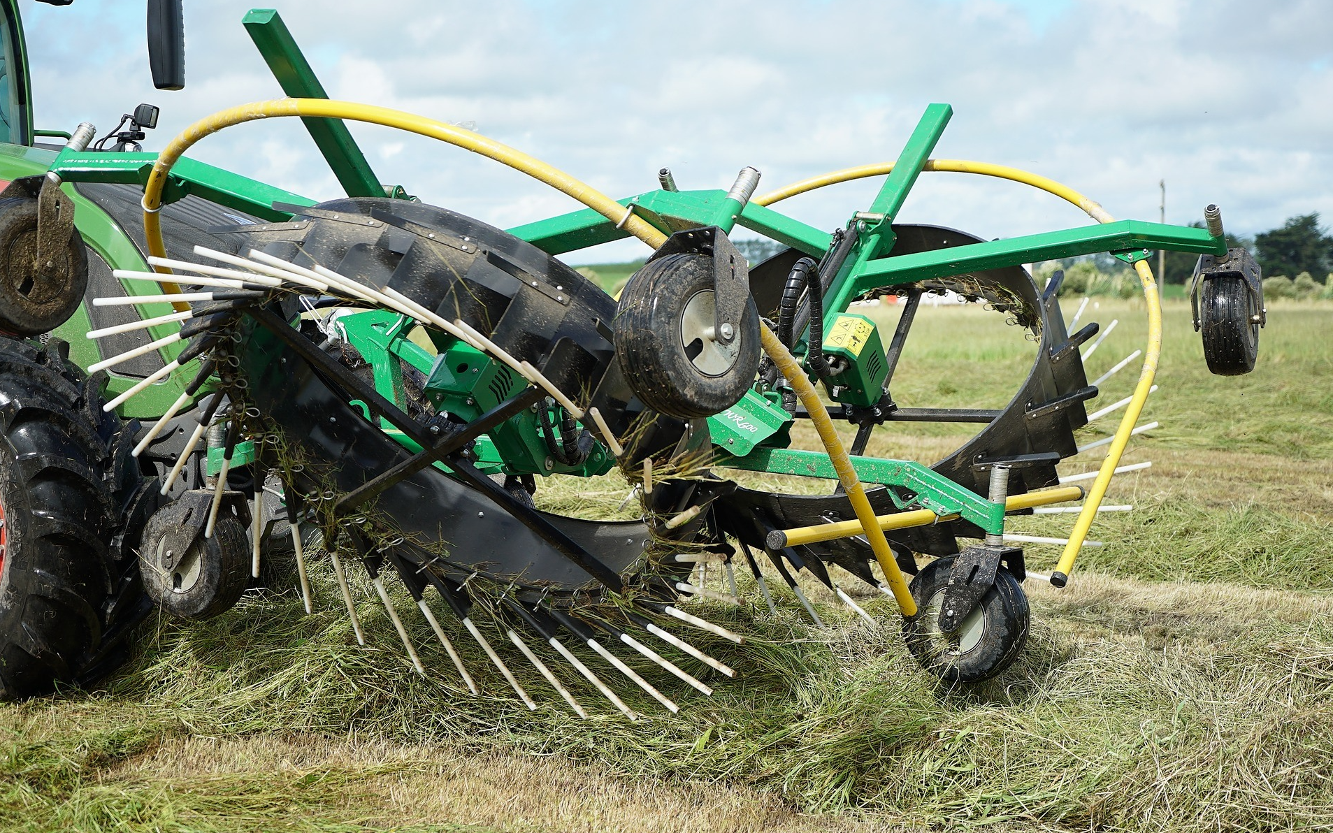 Option of mounting frame for Euro-Hook Front-End Loader, Accord front mower A Frame or conventional front link hook up. Thinking ahead upfront will save a lot of duplicated resources during the upcoming grass harvest combining a WR 600 Front mounted Rake with baler operations. Exceptionally gentle action on high value crops like lucerne and oaten hay. Also a big benefit is great row formation in baleage, with precision shaping of row width, height and shape plus not driving over the crop you can form well packed and ideal shaped bales every time, this applies to Round bales, Conventional bales and Medium square bales. Also a great system when ground conditions are soft to avoid forage contamination and compaction raking in combined with baling.
