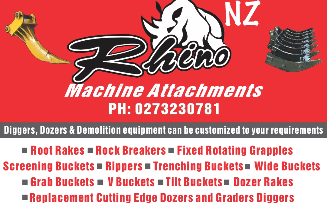 I'm am a supplier of heavy duty machine tooling for all size machines can provide quotes for any tooling you may need please contact all Equipment can be customised to your requirements Quick Hitch's hydraulic or manual can be Customised to steep up or down machine sizes so one tool covers more machines also Root Rakes, Rock Breakers, Fixed rotating Grapples, Screening Buckets, Rock Buckets, Rippers, Trenching Buckets, Wide Buckets, Grab Buckets, V Buckets, Tilt Buckets, Track Plates, Hitch hydraulic solenoid valve and hose kits, Dozer Rakes, Cutting Edges Dozer and Graders Diggers , Dust suppression Fog Cannons. www.rhinoattchments.co.nz Email [email protected] Hitachi, Komatsu, Kobelco, Sumitomo, Cat, Doosan, Volvo, Hyundai and most other excavator brands. 12 Month Warranty