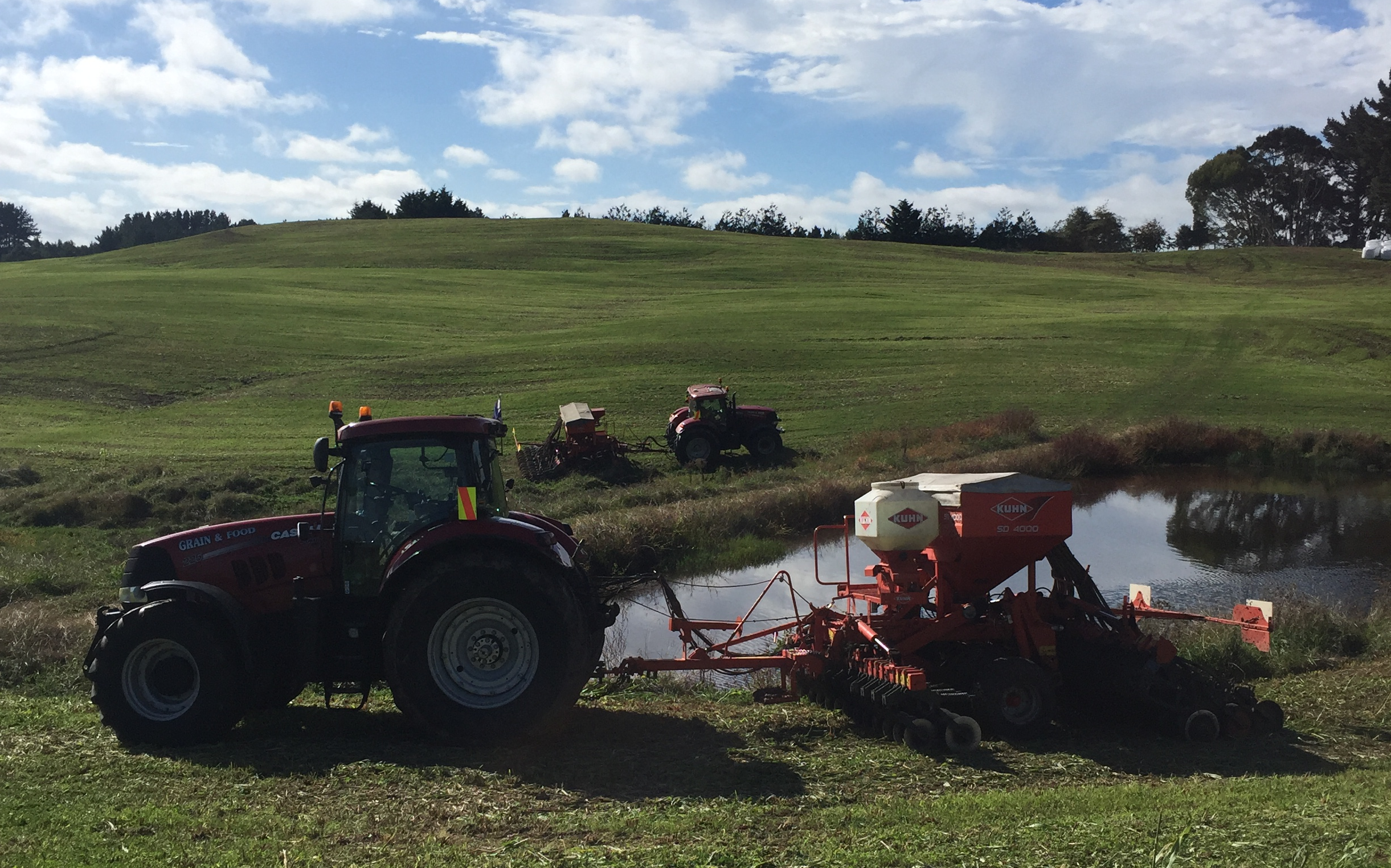 Direct Drilling/Undersowing: Kuhn SD4000 drills are proven as the best drills for direct drilling of both fine seeds and grasses. Narrow 125 row spacing's. Triple disc openers and parallel ground contour following individual wheels make these great drills. One of the drills is fitted with a stocks air seeder to do seed and fertiliser. Roller Drill : Brasicas/Summer Crops/Grass Seed