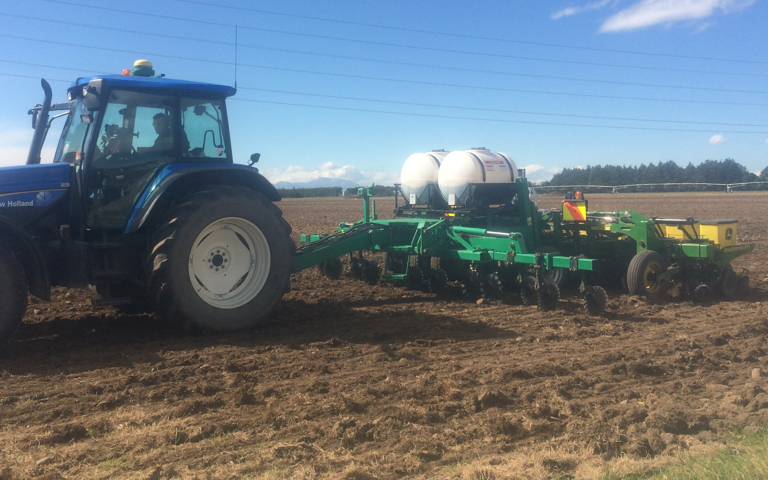 12row 20inch spacing -Various crops: fodder beet, beans, broad beans, maize, peas -No till coulters up front -Cart mounted lowers soil compaction compared to tractor mounting -Two simultaneous fert options 2x2 and in furrow -Both options can be differing fert mixtures/rates -GPS/autosteer guided tractors We also have a basic interrower/foliar feeder that can follow this later in the season. Great for organic weed control